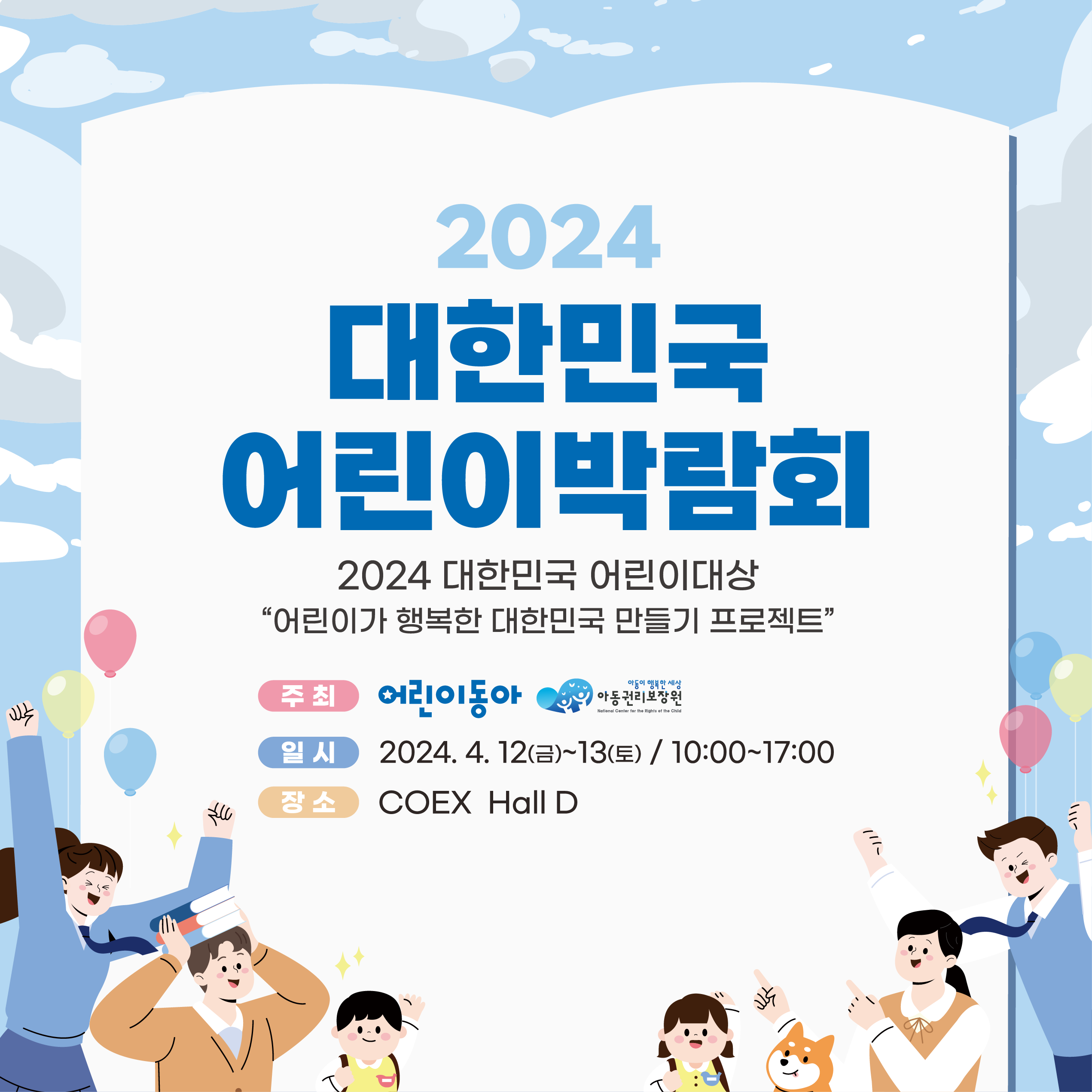 2024 대한민국 어린이박람회 ○ 행사개요 - 어린이가 행복한 대한민국 만들기 프로젝트! 미래세대 어린이가 훌륭한 인재로 성장할 수 있…, 전시,포럼,세미나,축제정보를 마이스포털 코드엠에서