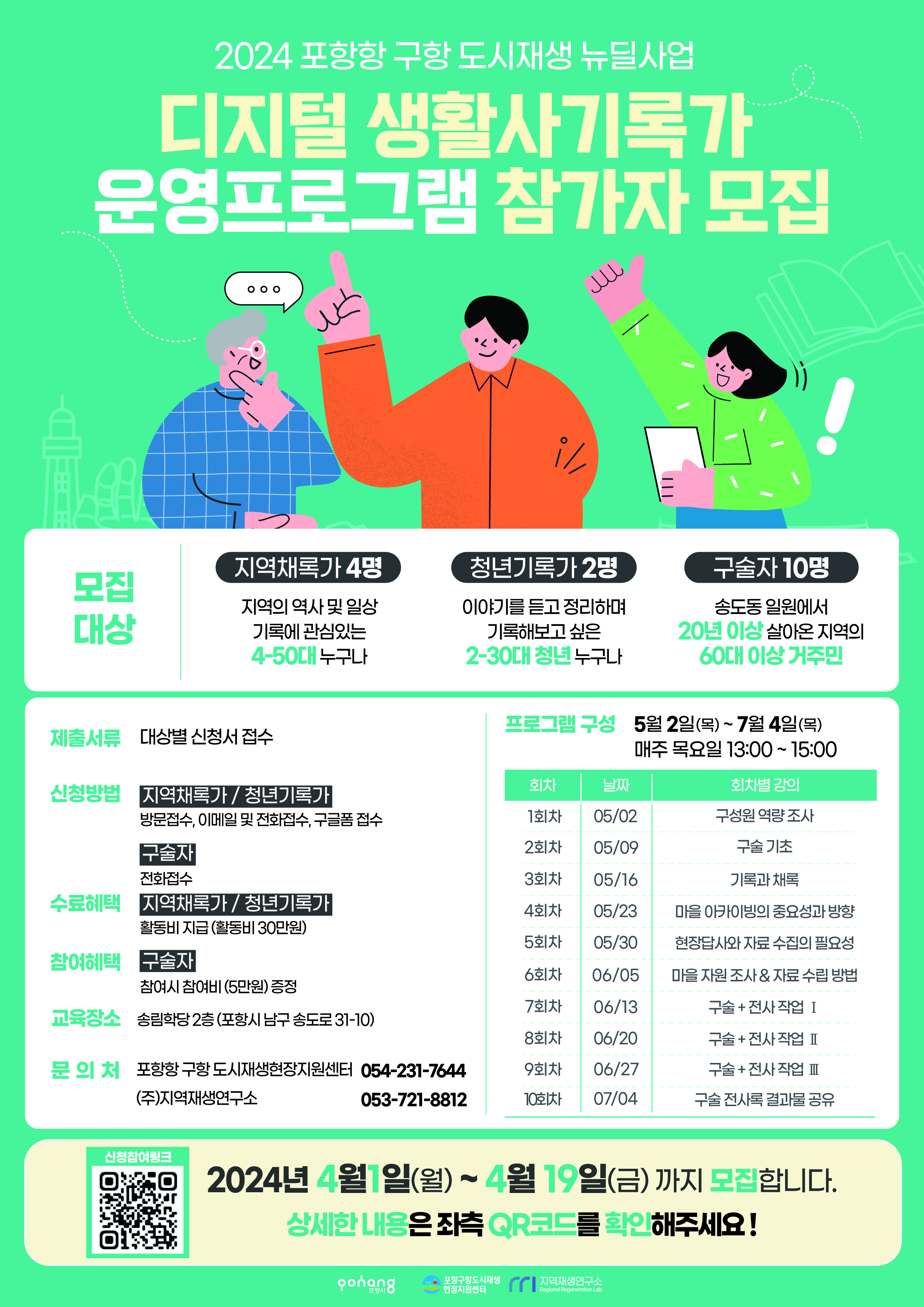 - 포항항 구항 도시재생현장지원센터에서 2024년 '포항항 구항 도시재생 뉴딜사업 디지털생활사 기록가'